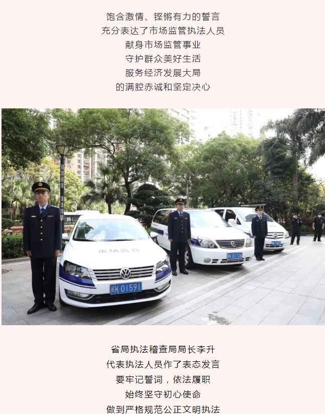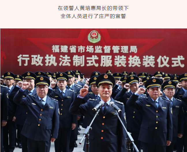 以统一着装为契机,全面加强执法队伍建设和教育管理,健全廉政风险和执法风险防控机制,严格执法监督,严查违规违纪行为,努力打造廉洁公正执法队伍。各级市场监管部门要切实落实全面从严治党主体责任,各级领导干部要带头示范,恪守执法之责,用好手中之权,以高的标准、严的纪律、实的作风,展示市场监管部门良好形象。