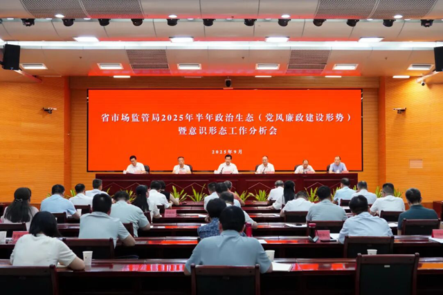 近日,省市场监管局召开2025年半年政治生态(党风廉政建设形势)暨意识形态工作分析会,查摆问题不足,研究部署下一步工作。党组书记、局长黄水木主持会议并讲话。