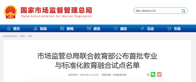 近日,市场监管总局、教育部联合印发《关于公布专业与标准化教育融合试点名单的通知》。此次试点是两部门首次联合开展的全国性专业与标准化教育融合试点工作,标志着我国标准化人才培养迈入新阶段。