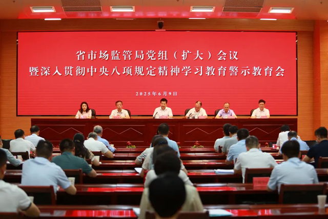 6月9日,省市场监管局召开党组(扩大)会议暨深入贯彻中央八项规定精神学习教育警示教育会,学习贯彻习近平总书记关于加强党的作风建设的重要论述和重要指示批示精神,传达全省警示教育会精神,通报剖析各层面违反中央八项规定精神典型案例,对下一步推进学习教育进行部署。党组书记、局长黄水木主持并讲话。