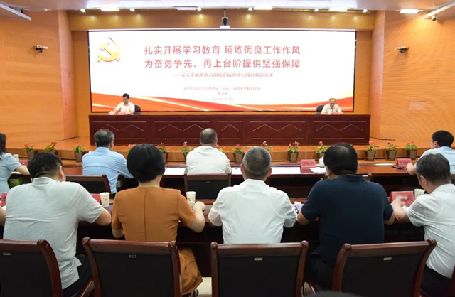 会议由党组成员、副局长、直属机关党委书记许和木主持。省市场监管局、省药监局、省知识发展保护中心领导班子成员,省市场监管局二级巡视员,局机关和各直属单位处级领导干部、一级至四级调研员职级干部,局学习教育工作专班成员约230人参加。