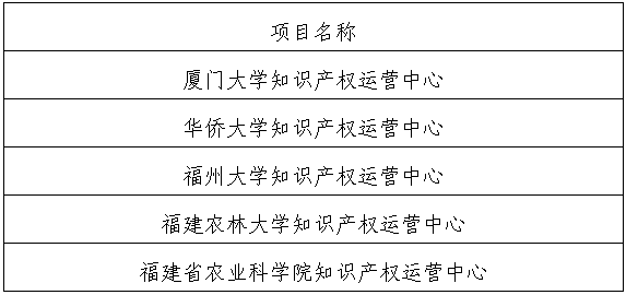2023年福建省高校院所知识产权运营中心项目拟立项名单公示