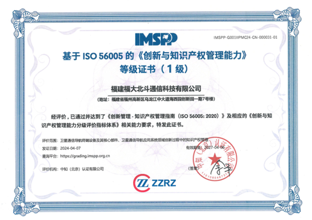 日前,福建福大北斗通信科技有限公司作为福建首批创新管理知识产权国际标准试点企业,获颁基于ISO56005的《创新与知识产权管理能力》1级证书,这是我省首张基于ISO560005的《创新与知识产权管理能力》等级证书,标志着我省创新管理知识产权国际标准实施试点工作取得新进展。