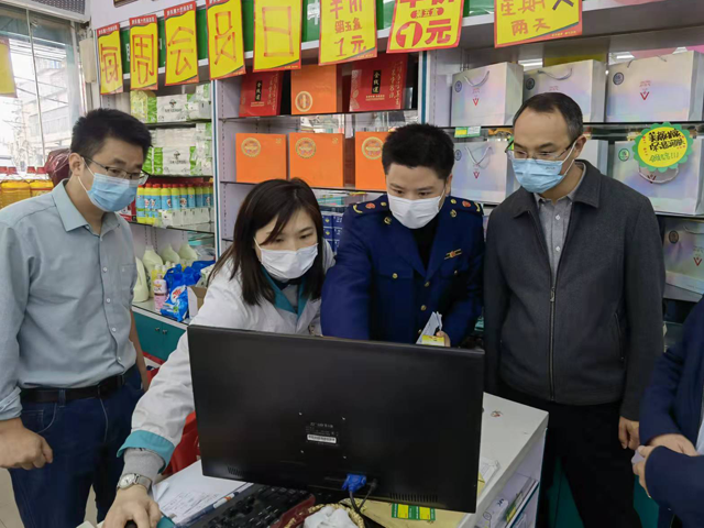 在龙田积库新永惠药店,王新刚查看了入口处查验健康码、行程卡、测温、戴口罩等疫情防控措施落实情况,查看“四类药品”销售实名登记信息,王新刚对药店从严从实落实疫情常态化防控措施给予充分肯定,要求市场监管部门要强化督导检查,督促各零售药店不折不扣落实好主体责任,发挥好药店“哨点”作用,及时发现问题,堵塞漏洞。