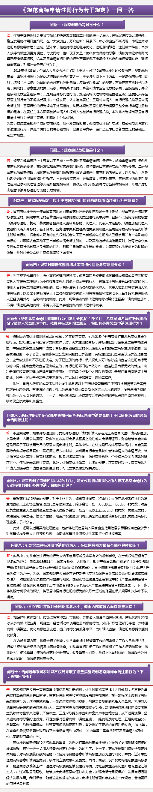 问题十:请问近年来国家知识产权局采取了哪些措施规制恶意商标申请注册行为?下一步将如何加强?
