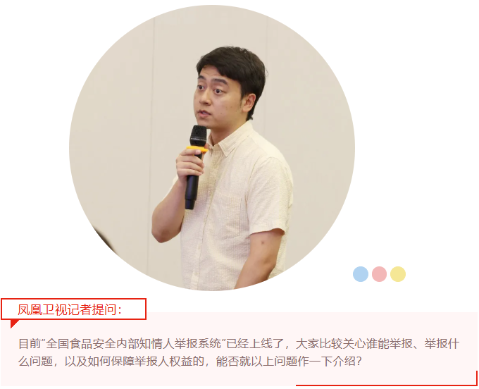 三是“如何保障举报人权益”。为了让知情人敢举报、愿举报,我们采取了以下三项措施:第一,保护举报人的个人信息。系统支持实名、匿名双轨举报,通过技术手段保障信息安全,坚决杜绝隐私泄露,让知情人没有后顾之忧。第二,对举报属实的予以奖励。坚持物质和精神激励相结合,对核实有效的举报,属地市场监管部门将按规定给予奖励,对报告重大风险隐患等突出问题将予以重奖,让“敢说不”的人得到实实在在的正向激励。第三,让举报人实时了解处理进度。依托“全国统一接收、编码、分派”的闭环管理,举报人能实时追踪办理进度,全程掌握举报事项处理动态。