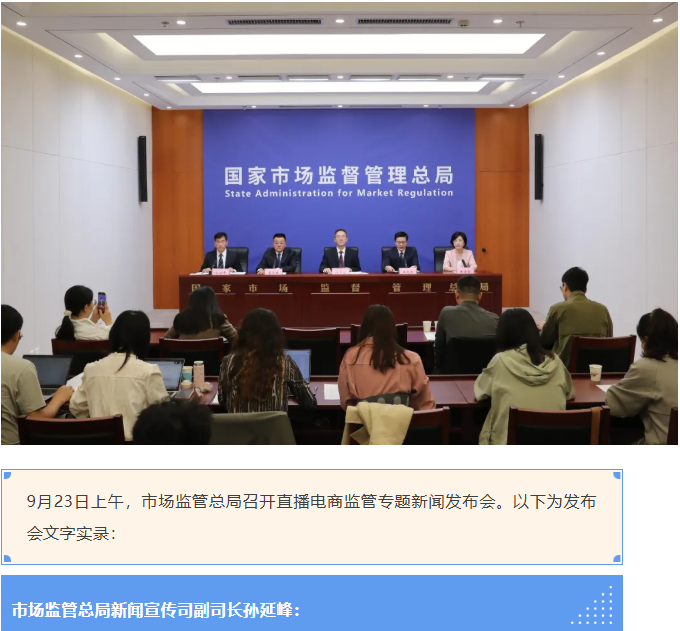 市场监管总局深入贯彻落实党中央、国务院关于平台经济的决策部署,坚持监管规范和促进发展并重,加大直播电商行业案件查处和曝光力度,着力促进直播电商行业规范健康发展。