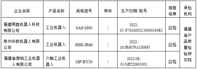 福建省工业机器人产品质量省级监督抽查结果(合格)