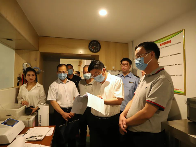 督导组要求,一要充分认识重要性。各级市场监管部门要进一步提高政治站位,充分认识做好中考食品安全保障工作的重要性,紧密结合夏季气温升高、湿度增大、发生食源性疾病风险增高的特点,加强组织领导,增强风险意识,强化隐患排查,切实把中考食品安全保障抓紧、抓细、抓实、抓出成效。二要严格落实两个规范。督促学校和校外供餐单位严格执行《餐饮服务食品安全操作规范》《餐饮服务通用卫生操作规范》,加强从业人员健康检查和晨检、食材管控、加工操作、餐饮具清洗消毒、食品留样、领导陪餐等食品安全管理制度,确保食品烧熟煮透、生熟分开,避免交叉污染。三要严格落实风险隐患排查。加强对辖区内考点学校食堂、考生及考务人员集中用餐配送单位、考生集中接待单位、学校周边宾馆、酒店及食品经营单位等隐患排查与整治,严厉查处学校及周边食品安全违法违规行为。安排监管人员对涉考保障和接待单位的食品安全工作进行驻点监督或重点巡查,严防严控食源性疾病发生。