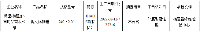 表2 福建省旅游鞋产品质量省级监督抽查结果(不合格)