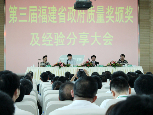 10月19日上午,第三届福建省政府质量奖颁奖仪式及经验分享活动在莆田举行。福建省质监局局长、省质评办主任黄维礼、莆田市政府市长梁建勇出席会议,并作重要讲话。会议由省质监局纪检组长陈春禹主持。省质评办领导、各设区市质监局分管领导和各设区市企业代表等210余人参加了会议。