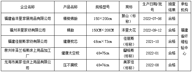 福建省絮用纤维制品产品质量省级监督抽查结果(合格)